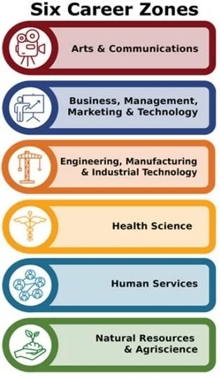 The early childhood and elementary school years are the ideal times to introduce the career zones to students and families. These are broad categories, or zones, of careers that have similarities and allow students to connect learning to careers.